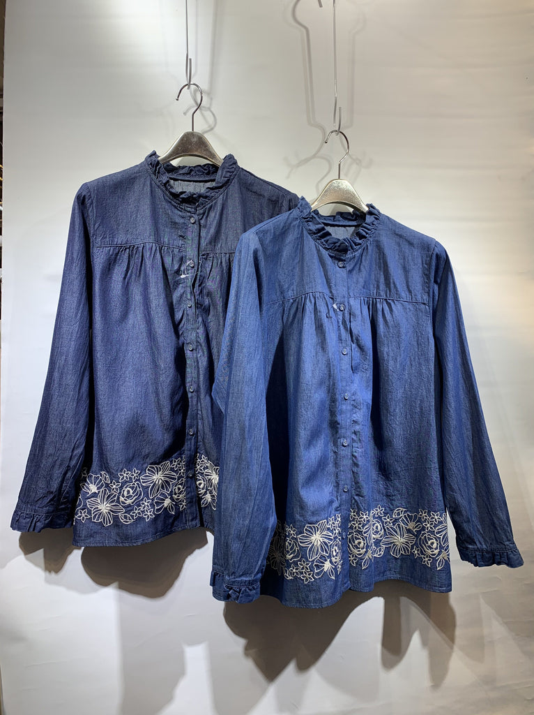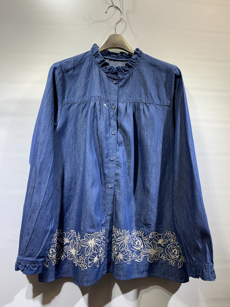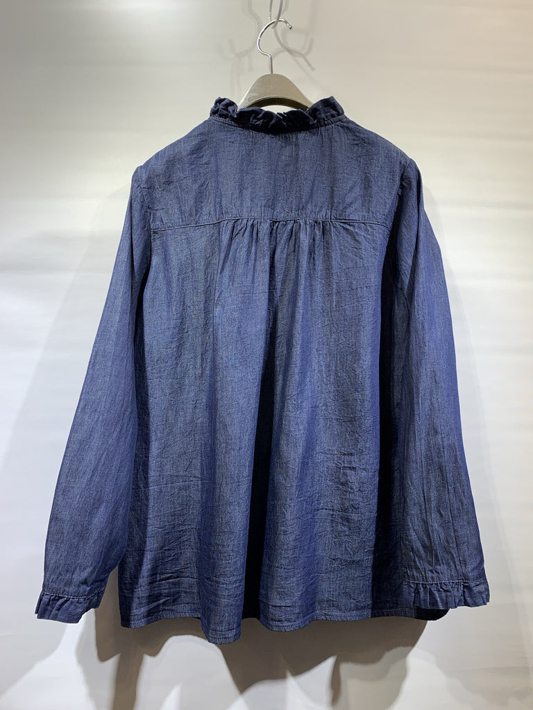 日本🇯🇵中藍/深藍ruffles領車線花腳恤衫