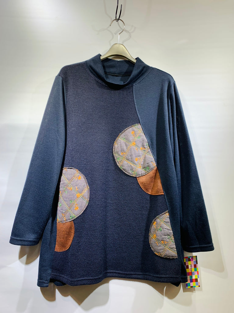 日本🇯🇵藍色棉料拼圈圈冷料top