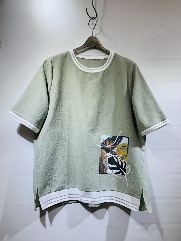 韓國🇰🇷粉綠色印圖薄紗料衫