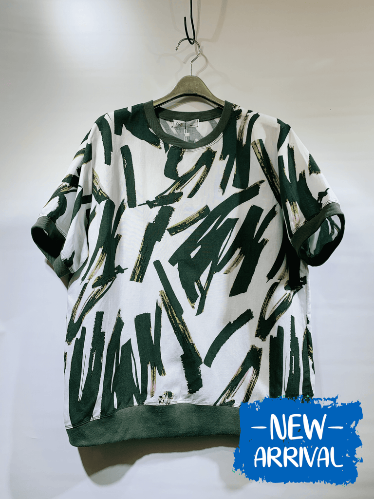 韓國🇰🇷綠色&白色圖案棉麻料衫