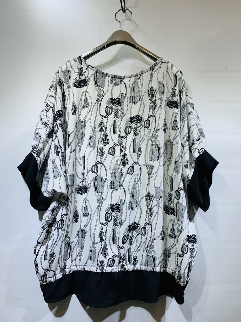 韓國🇰🇷黑白圖案束腳雪紡衫