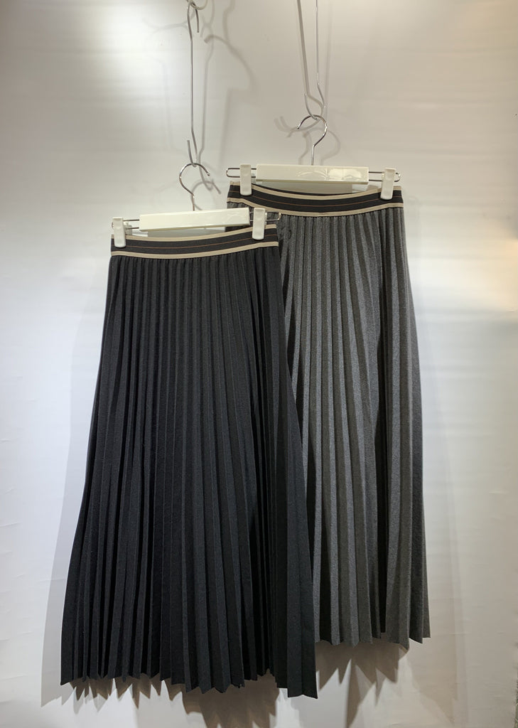 韓國🇰🇷黑色/灰色橡筋腰絨料百摺裙