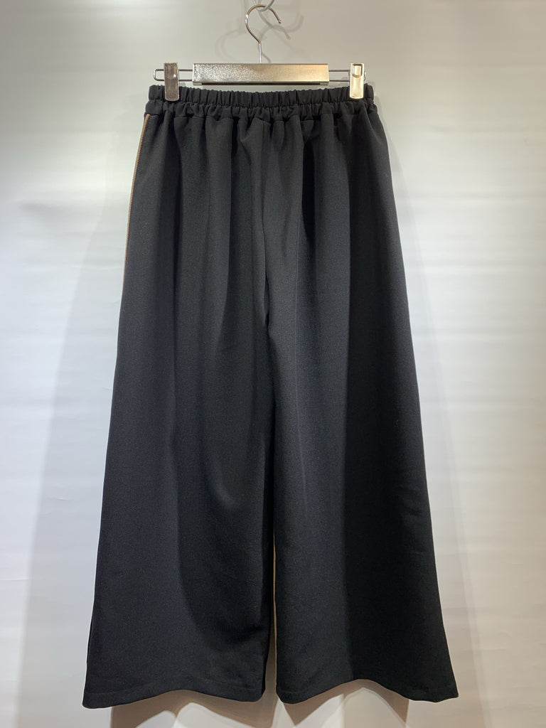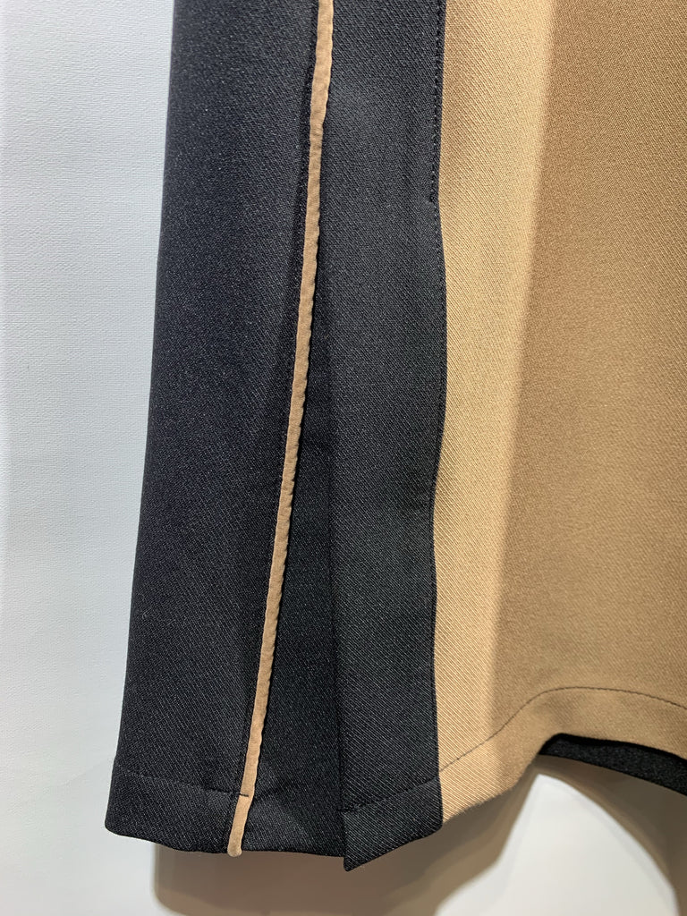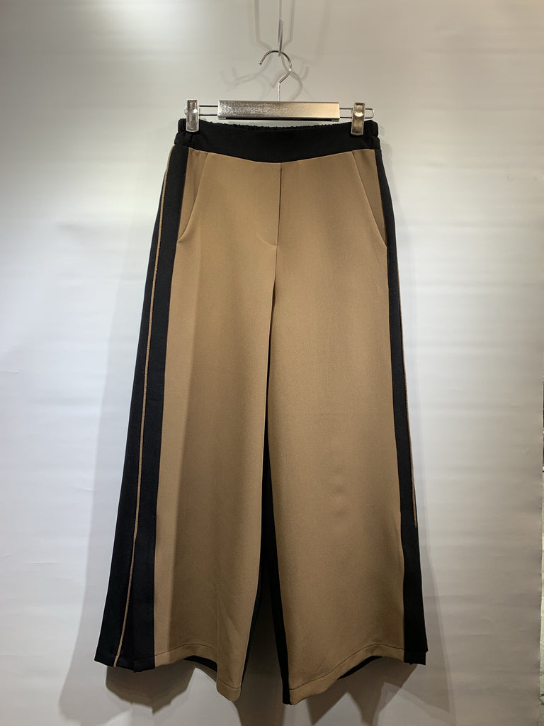 韓國🇰🇷杏色拼黑色開叉腳直筒褲