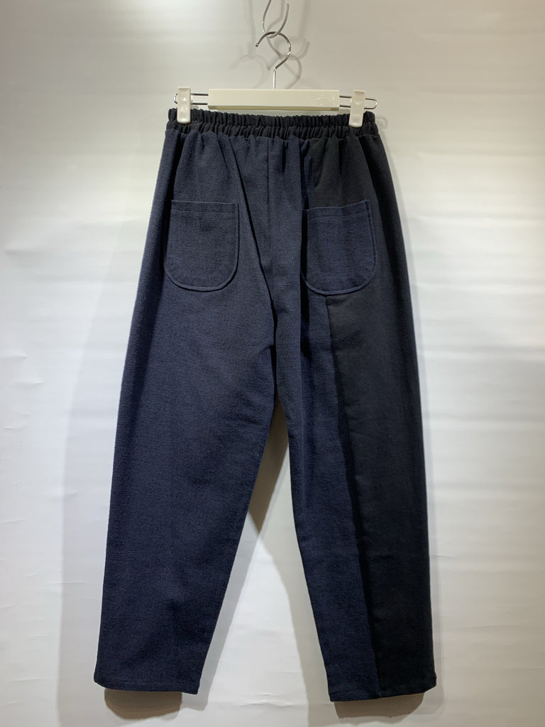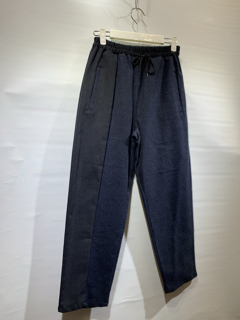 韓國🇰🇷黑色拼深藍暗格紋褲(有彈性)